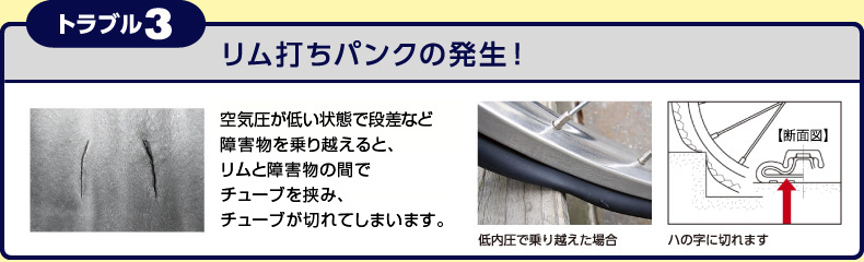 トラブル2) チューブが折れ重なってパンクする場合があります