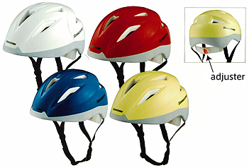 Background behind Development of the NEW Safety Helmet It was announced on June 20, 2007, that certain revisions to the Road Traffic Act made it obligatory for children and infants to wear helmets when riding bicycles. (Conformance with the responsibility to protect children and infants) Road Traffic Act, Section #63, Article #10: All people responsible protecting children and infants shall strive to ensure that they wear helmets when riding bicycles. We have strongly recommended that children wear helmets ever since the release of our Angelino bicycle fitted with child seats (specially-designed bicycle with child seats at the front and the rear.) We market helmets designed for children riding alone to and from school, but the new helmet was developed with high safety levels and is both lightweight and equipped with an adjuster so that the size can be adjusted to fit the size of the head. Features of the NEW Safety Helmet 1.Japan's first child's helmet fitted with an adjustor to ensure it fits the head perfectly. 1)Conventional child helmets are fitted with an adjustable chin-strap, but we overcame the difficulties inherent with ensuring the helmet fits the head perfectly by developing an adjustor so that the size of the helmet can be moved forwards and backwards. 2)It is adjustable within a range of 51cm to 57cm to fit most Japanese elementary school children, and it remains firmly in place in the event of a tumble to protect the child's head. 2.Lightweight design to reduce the strain on the neck The helmet is made from ABS resin to provide a lightweight structure of just 320g and reduce the strain on the child's neck. 3.Large ventilation holes to provide favorable airing The helmet includes large ventilation holes to make it comfortable during the humidity of the summer for children who ride their bicycles to school or otherwise use them on a daily basis. 4.Colorful 4-tone lineup Child helmets are generally white, but we have used multiple colors to make bicycle riding even more fun. 5.The inside of the helmet is covered with six inner pads to provide comfort. 6.The helmet conforms to product safety standards (SG Mark.) 7.High-reflection seals are available as options. ![]() NEW Safety Helmet CHNS5157 Overview of the NEW Safety Helmet 1.Product Name: NEW Safety Helmet 2.Product Configuration and Price