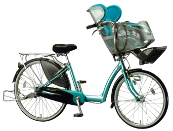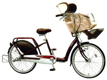Background behind the Development of the Angelino This model is a part of the Angelino series, for which sales have grown by more than twenty percent annually, and it has been developed as a child care bike for young mothers to provide both safety and comfort for children. This bicycle represents a full model change with the special child seat, which is fully equipped with a reclining function as standard to ensure improved safety and comfort. This function improves comfort for children and increases field of vision for mothers to guarantee even higher levels of safety when cycling. Also, in order to cater to the demand of mothers of short stature, we have also released the Angelino Mini bicycle that can be ridden by people up to five centimeters shorter than is usually possible with conventional models. ![]() Angelino Features of the Angelino 1. "The Super Angel Seat 2.0", providing added safety and comfort for children based on scientific experiments. A reclining function has been added to this new style of high-grade baby seat fully equipped with functions to provide safety and comfort, and it has evolved into a seat that guarantees superior levels of safety and comfort for children. (1) Equipped with "Yuttari reclining"(a reclining seat) to provide safety and comfort for children. The conventional 20-degree reclining angle has been extended to 30-degrees to prevent the child from being thrown forward and to provide greater levels of safety and comfort. The reclining seat also provides a wider field of vision for the rider, which also improves safety. The rear brake wire is imbedded into the frame to produce a sleek appearance. (2) "The new style of flexible head guard" that protects the head has been enlarged to not only support the head with a larger cushion (made of urethane,) but also to provide greater levels of protection. The head guard has been designed in a concave shape to prevent helmets coming into contact with it. (3) "The sliding foot rest" is adjustable between six stages to match up with the natural growth of children. (4) "Shikkari Yasashii safty belt"(The firm but gentle safety belt) fits securely over the shoulders to prevent children from standing up. (5) The foot rest can be closed when a child is not on the bicycle to turn it into "a shopping basket function". ![]() Super Angel Seat 2.0 2. Two major safety functions to prevent toppling when the bicycle is parked. (1) The "Temotode Lock II" enables the handlebars to be locked and released swiftly and easily in the most natural manner without having to take the hands off the handlebars. (2) "Super Rakuraku wide stand"(The Super Easy Wide Stand) has greater breadth to prevent the bicycle from falling over, and it can be operated with a simple touch of the foot to avoid unstableness when parking. 3. A Specially Designed Bicycle Supporting the Upbringing of Children by Guaranteeing Safety and Comfort (1) An "Open Wide Frame" with a lightweight design that uses aluminum. The bicycle can be easily mounted even when wearing a skirt, and the feet easily and swiftly be placed on the ground. (2) The baby seat is situated at the center of gravity above the handle "Handle furafura teigen sekkei"(to minimize wobbling when a child is using the seat). (3) The front wheel is 22 inches in size owing to the "low center of gravity design" that locates the baby seat as low as possible, and the rear wheel is 26 inches in size to facilitate comfortable traveling. The Angelino Mini uses 22-inch wheels at the front and back to cater for mothers who are short in stature. 4.Fitted with the BAA (Bicycle Association Authorization) Mark This model conforms to the BAA (bicycle safety standards) enacted by the Bicycle Association. 5.Full Safety and Anxiety-Free Support System Safety support is provided anxiety-free with the Angelino Carefree Accident Insurance, which is valid for one year, and the Two Year Theft Compensation System. There is no charge for subscribing to either of these systems. 6.Equipped with Many Useful Functions (1) The LEDs used on the "white flash slim battery lamp" are bright and have a long life. (2) Fitted with a "pipe carrier" to prevent instability when heavy loads are placed on the rear carrier. (3) The "new non-slip pedals" are finished in a material that prevents the soles of shoes from slipping. 7.Optional Parts That Enhance Comfort and Safety (1) The child seat can be replaced with a special large-size basket (4,500 yen, including tax) when the child grows too large for it. (2) The "Angel Rear Seat" (13,800 yen, including tax) is available for the Angelino Mini when children get too big for the front seat. The Angel Seat at the front should be replaced with the special large-size basket (4,500 yen, including tax) at this time. (3) Helmets, raincoats (for adults and children,) cycle covers and windshields, etc., are also available. ![]() Angelino Mini Overview of the Angelino 1.Product Name: Angelino 2.Product Configuration and Price