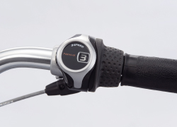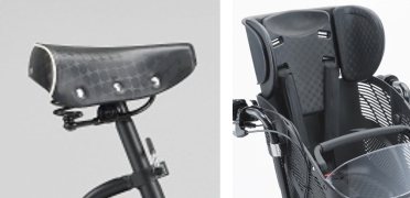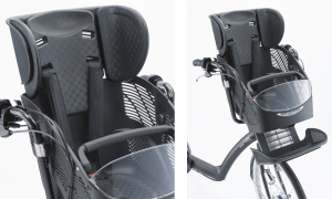 *2 The assistance level indicates the assistance output. <Features of the Angelino PETITE> 1. 20-inch small-diameter fat tiers that provide a sense of stability Uses fat tires with a width of 2.125HE, which will fit within the rails provided at normal parking areas. These tires provide vibration suppression and stability on rough roads, and despite their small diameter, they have ample air volume to provide anxiety-free levels of load durability even when three people weighing up to 100kg are on the bicycle. ![]() 2. Newly-developed low center of gravity open wide tough frame The shape of the open wide frame makes the bicycle easy to pedal and prevents the knees from coming into contact with the front child seat, even when men are riding. It has been designed to keep warping and wobbling down to a minimum, and it is a durable and tough aluminum frame (*1) with sufficient strength and rigidity to carry three people (the rider and two children.) The Class-27 rear pipe carrier (maximum weight capacity of 27kg) (*2) is also rigid and fixed securely in place so that special rear child seats can be fitted. The child seats are also located low on the bicycle to enable children to be placed on and lifted off both the front and rear seats (lowest design of all standard BAA 3-seater bicycles) (*3) smoothly. The position of the saddle is also the lowest of all standard BAA 3-seater bicycles (*3) to enable both feet to be placed firmly on the ground, and this provides easy mounting and dismounting for the ladies. *1: In comparison with general Class-18 Bridgestone bicycles. *2: Class-27 (maximum weight capacity of 27kg) rear carriers are standard fittings. *3: In comparison with other Bridgestone bicycles as of May 31, 2012. ![]() 3. Low-wobble design handlebars that are not quick but provide excellent levels of stability on the straights Stability on straight roads and the handling balance have been optimized in alignment with the 20-inch tires. The handlebars are not quick, but they provide a safe and comfortable ride on straight runs and on bends. The front child seat is located directly above the handlebar stem to provide a low-wobble design for safety purposes when transporting children. Coupled with the low center of gravity, the specifications for this bicycle provide excellent levels of stability on the straights. 4. Pedal rotation equivalent to 26-inch tires for long-distance cycling Despite only having 20-inch diameter tires, the pedal rotation is almost the same as when riding on 26-inch bicycles during long-distance cycling. This reduces the amount of pedaling required for a more comfortable ride. 5. Smart Control Brakes that provide even high levels of braking even when wet The front brake has been provided with even higher levels of braking in order to ensure that the bicycle stops immediately with the weaker grip of ladies even when two children are on the bicycle for a combined weight of up to 100kg. 6. Large foot guards and chain guards to protect the feet of children Equipped with large foot guards to protect the child's feet from all eventualities and chain guards to prevent the child from catching his or her feet in the chain when the rear child seat is attached ![]() 7. New grip shift shape manufactured by Shimano This new grip shift enables the gears to be changed at the flick of a wrist, and the new shape provides a clean elegance to the overall appearance of the bicycle and additional strength in the event of the bicycle toppling over. ![]() 8. Super Angel Seat 2.0 Equipped with a reclining function that can be angled back to between 20 and 30 degrees and that provides a safe and comfortable seating position without leaning forward, a flexible head guard with a thick support cushion that can be adjusted in accordance with growth for increased head protection, slide-type footrests that can be adjusted through six stages in accordance with growth, a soft seat pad that gently guards the passenger from jolts in the road, a three-point seat belt that firmly holds the shoulders in place, a clear front cowling to guarantee both mother and child an unhindered view, grip covers adjustable through three stages that are easy to hold for children, and a shopping basket function that can be used by folding away the foot rests when no passenger is using the seat. ![]() 9. High-class and elegant POSH The POSH is now available in high-class, elegant frame colors. The cushions fitted to the Super Angel Seat 2.0 have been graphically-designed in brown and black, and the same design has also been used for the Terry saddle. The handle that encompasses the seat has also been coordinated in black to provide a sense of quality and enhance the overall style of high-class elegance. ![]() 10. Temoto de Lock II to prevent toppling This enables the handlebars to be locked with a fingertip switch without taking the hands from the handlebars. It avoids the risk of the bicycle toppling over owing to the unexpected rotation of the handlebars when parked or when unloading baggage 11. Super Raku-raku Wide Stand to prevent toppling The wide Super Raku-raku Wide Stand prevents the bicycle from toppling over when parked. The stand can easily be activated even when children are still on the bicycle with the application of the pivot and lever principle. 12. 8.9Ah Long-Life Battery Conventional batteries have a life-span of between 350 and 450 recharges (at the point of replacement) under normal circumstances, but this long-life battery enables between 700 and 900 (*) recharges, which is approximately double the life-span of conventional batteries, to double the total amount of traveling distance. This provides an economical purchase from the point of view that the extra life represents a full replacement battery over conventional models. We have also upgraded the shape to make attachment and detachment much easier. * This figure is a yardstick. The conditions under which this yardstick was established involve an a