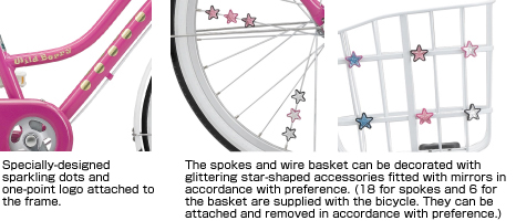 The market for bicycles aimed at girls is shrinking owing to the effects of a falling birthrate, and the Wild Berry has been newly developed with fashion-conscious elementary schoolgirls in mind in alignment with the recent appearance of high-fashion children's clothes. In more detail, the main aim of the design is to provide a bicycle frame in vivid colors that have been arranged in a simple and sophisticated manner to which "sparkling parts" favored by elementary schoolgirls can be attached. The frames come in a sparkling dot pattern and the spokes and basket can be decorated in glittering star-shaped accessories fitted with mirrors, and in addition to this, it can also be finished in a sophisticated casual design by coordinating the adult-taste wire basket and sporty saddle. The bicycle is also equipped with a durable, light-weight aluminum frame and high-quality brakes in consideration of safety. The front wheel is fitted with a double-pivot aluminum caliper brake that provides powerful braking power with light pressure, and the rear wheel is fitted with a newly-designed frist brake that boasts improved braking power and that provides gentle braking even in rainy weather to guarantee child safety. The line-up also includes an outer-attached 6-speed gear model in addition to the single-gear model. A complete bicycle that is fashionable, safe and comfortable for supporting children's lifestyles. Bridgestone's objective in developing the Wild Berry is to cultivate a new bicycle market for young girls who wish to differentiate themselves from conventional bicycles that use pastel coloring and characters. ![]() <Overview of Sales for the Wild Berry> Sales Area: Nationwide Annual Sales Target: 10,000 units (total) Date of Release: October 16 Standard Cash Retail Price: 26,800 yen to 31,800 yen (inc. tax) [Colors] Pearl Sugar (White) Gray Flamingo (Gray) Black Panther (Black) Berry-Berry (Pink) Wild Berry Design Features The main aim of the design is to provide a bicycle frame in vivid colors that have been arranged in a simple and sophisticated manner to which "sparkling parts" favored by elementary schoolgirls can be attached. In addition to this, it can also be finished in a sophisticated casual design by coordinating the adult-taste "cycle parts." ![]() ![]() Vivid colors arranged in a sophisticated and simple manner A color line-up covering everything from regular white through to a gray that is difficult to get fed up with, a chic black, and a vibrant pink. Any of these colors can be selected in alignment with the child's taste in fashion. The colors have also been given cute names to enhance the fun of selection. ![]() The aim of the design is to provide a bicycle for adult-mode elementary schoolgirls to which the sparkling parts they favor can be attached. ![]() Adult-taste cycle parts coordination ![]() [Product Configuration]