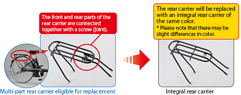 In order to ensure that free replacement is carried out smoothly, please check the color of your rear carrier (product code) beforehand and then contact us.