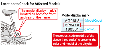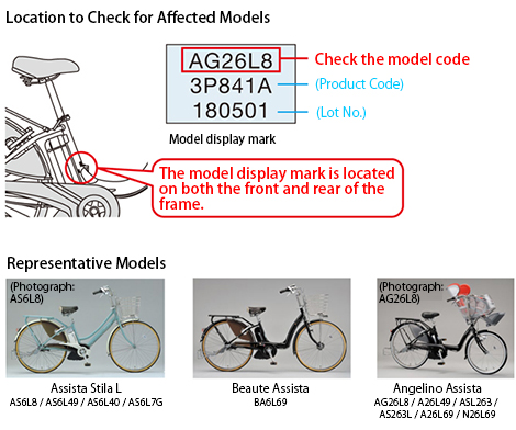 Names and codes of the eleven motor-assisted bicycles that are affected by the replacement are listed below. (Models manufactured between March 2007 and January 2011)